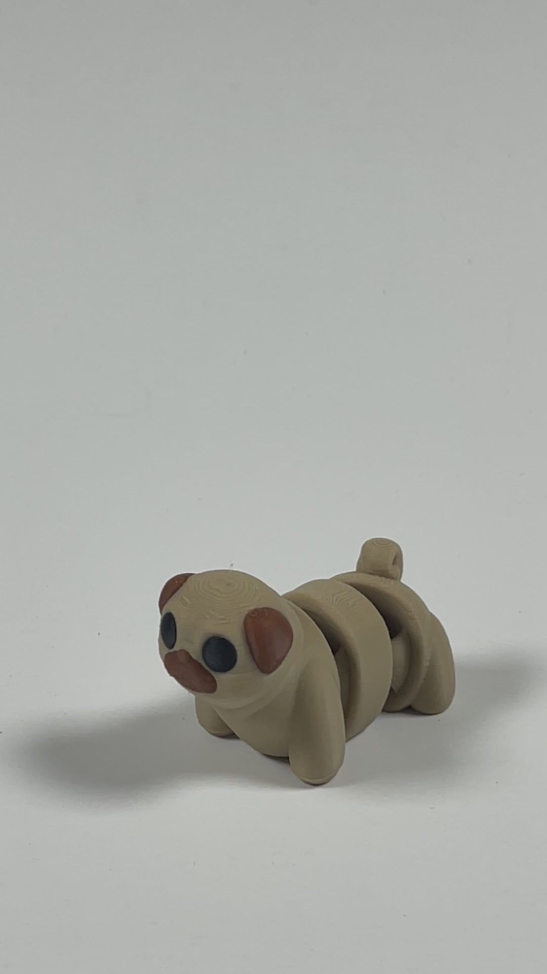 Pug mini fidget toy designed by Zou3D in shades of brown PLA plastic, with cute black eyes. Great little fidget or desk toys.